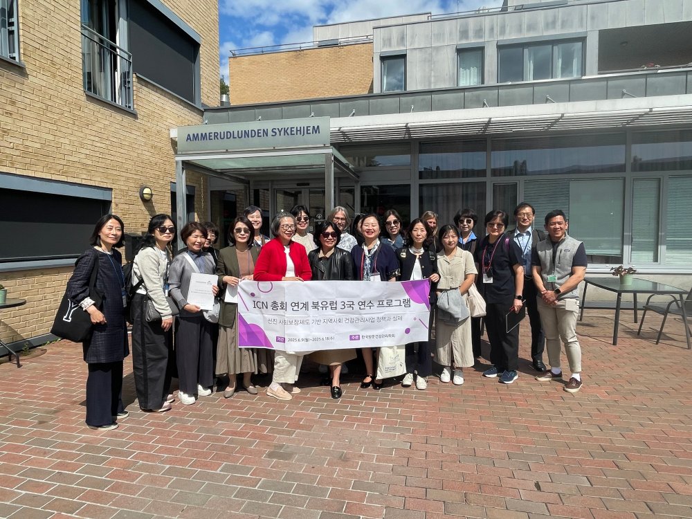 Fra Sør-Korea til AmmerudlundenEn gruppe sykepleielærere fra flere universiteter og private sykehjemseiere samlet seg i dagligstuen på Ammerudlunden sykehjem en dag midt i juni.